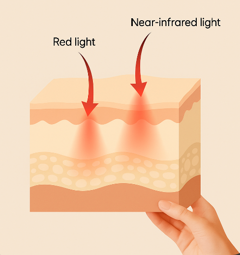 The HBH Infrared Sauna Blanket uses wavelengths of 660nm (red) and 850nm (near-infrared), both widely studied for their interaction with skin and light energy absorption.